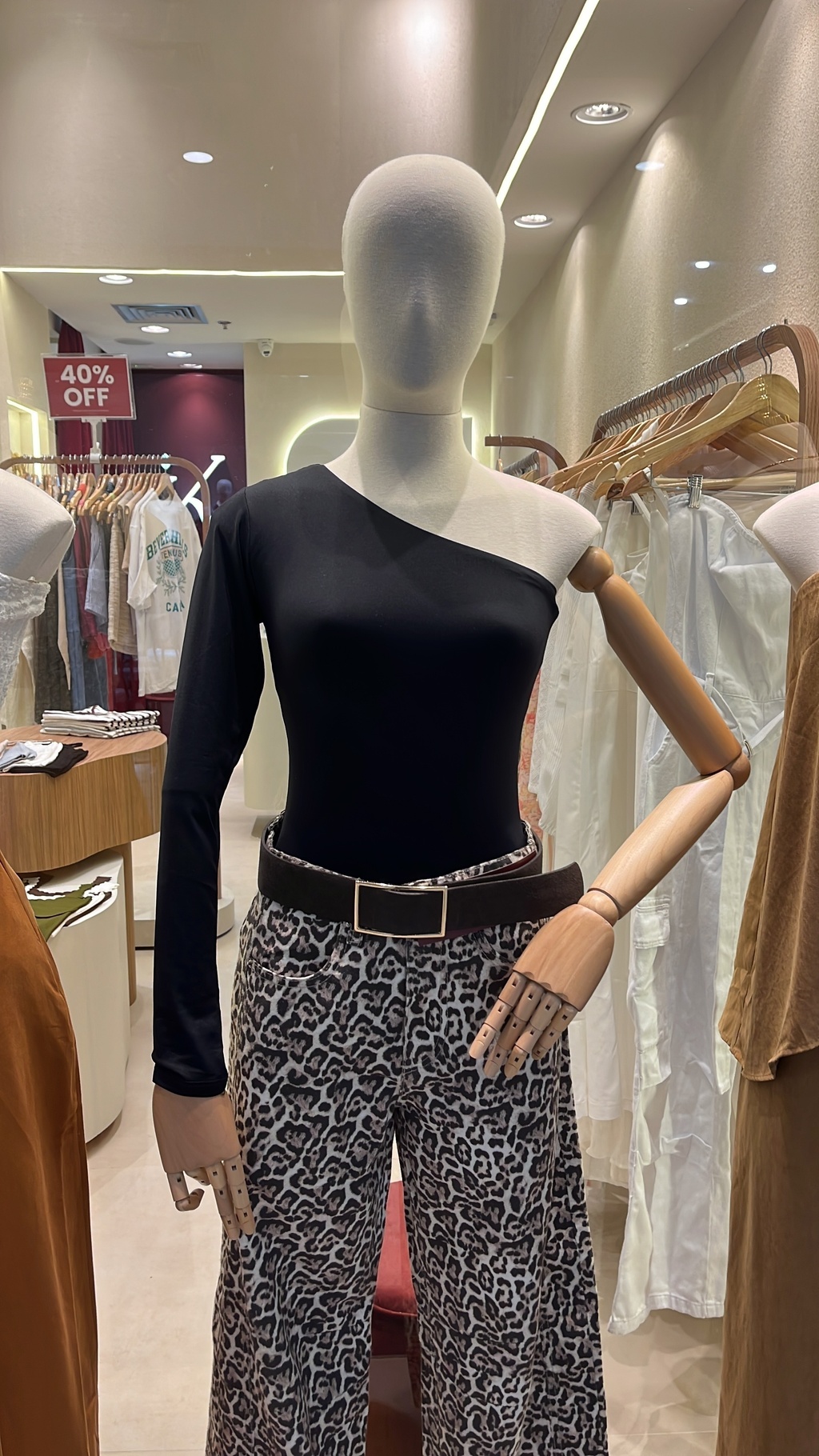 Descubra o Body Uma Manga, uma peça única que valoriza o colo com seu decote assimétrico. Confeccionado em poliamida com tecido duplo, este body proporciona conforto e elegância para diversas ocasiões.